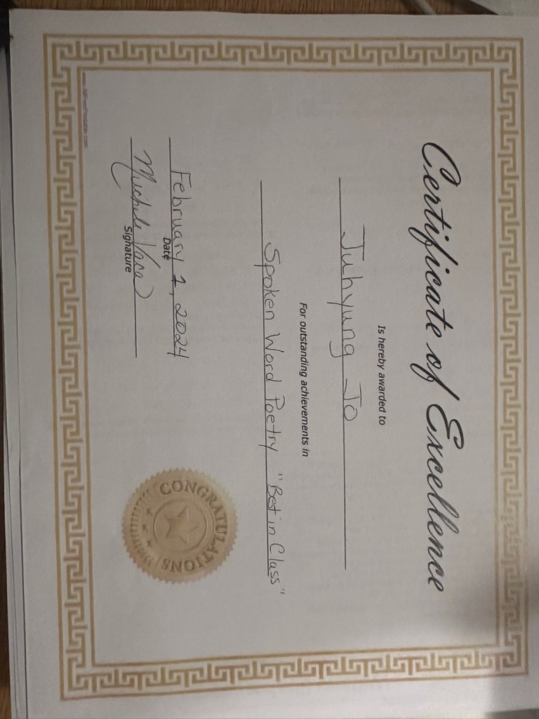 It was such a devastating weekend. I had three big assignments just due Monday, which made me work for almost every hour on the weekends. One of the biggest assignments was to write a spoken poem of your own. I couldn’t believe how the class went so fast and went from “What is a poem?” to “Write a 2-minute long spoken poem” in a week. I’ve almost never written a poem, even in Korean. That’s why this turned into my hardest English assignment so far.